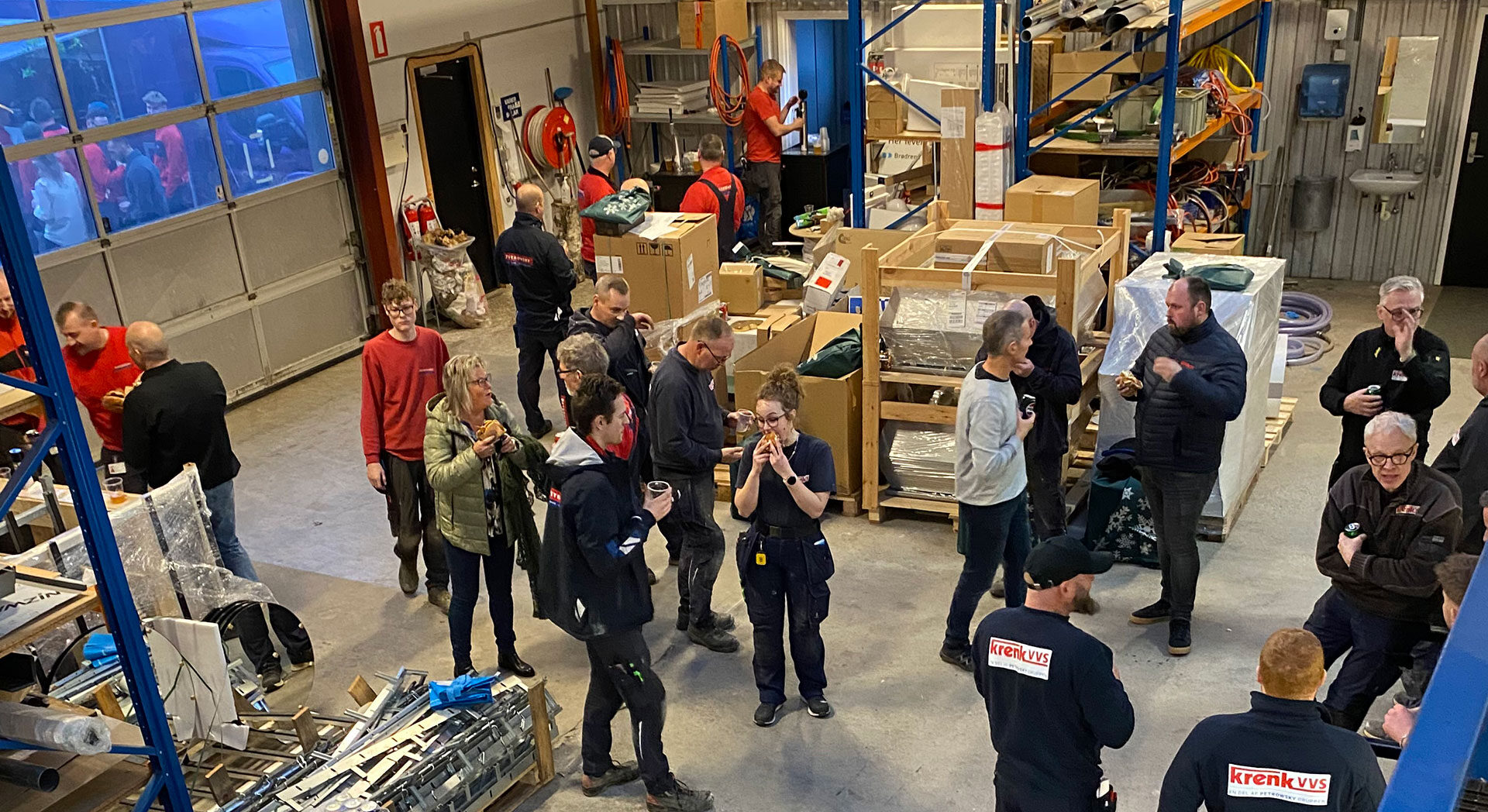 Maden blev nydt på værkstedet, hvor medarbejderne samledes omkring bordene, spiste og udvekslede historier og grin fra året, der går på hæld.